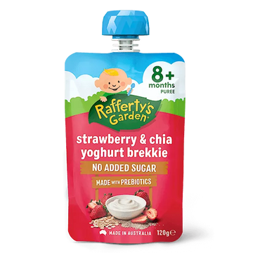 Rafferty's Garden Strawberry & Chia Yoghurt Brekkie pouch is made with the goodness of strawberries...