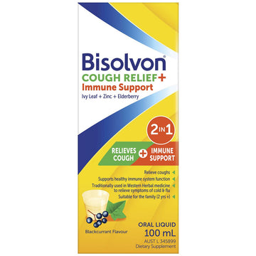 AUST L 345899 Bisolvon Cough Relief + Immune Support is a 2-in-1 formulation that relieves...