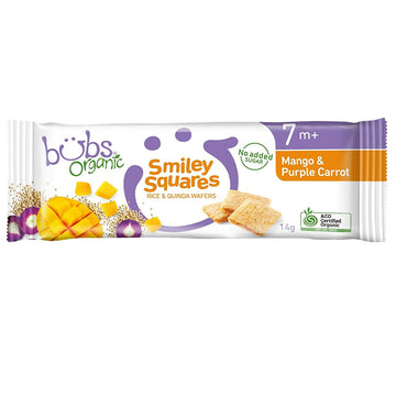 Bubs organic smiley squares are rice and buckwheat wafers bursting with certified organic goodness. Naturally...