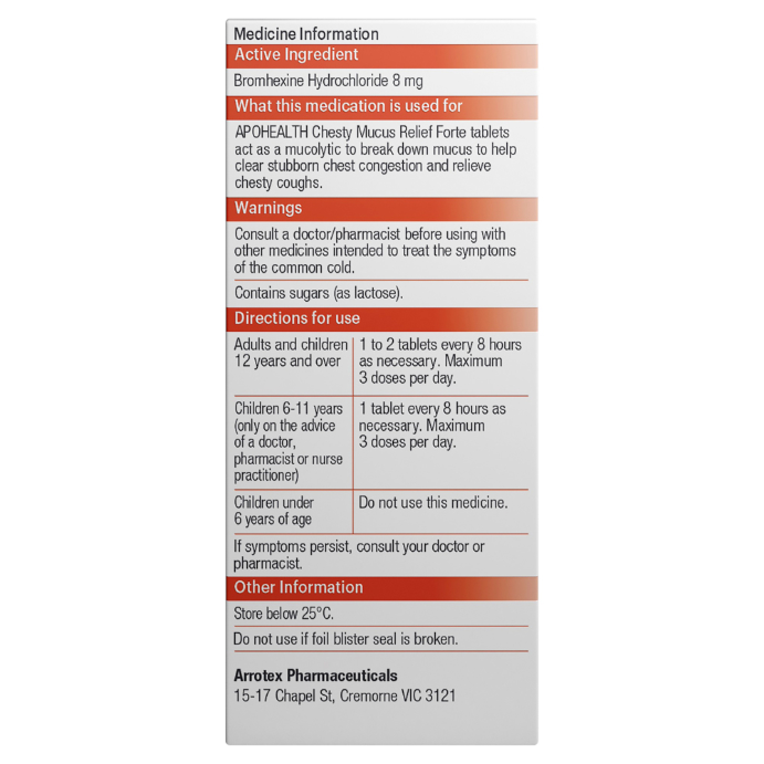 APO HEALTH Chesty Mucus Relief Forte 8mg Blister Pack 50 Tablets