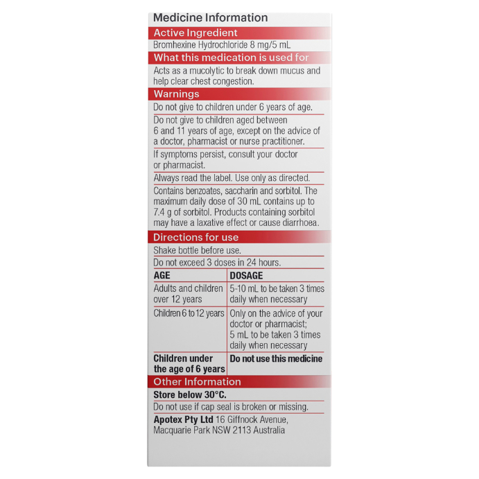APO HEALTH Chesty Mucus Relief Forte Bottle 200mL