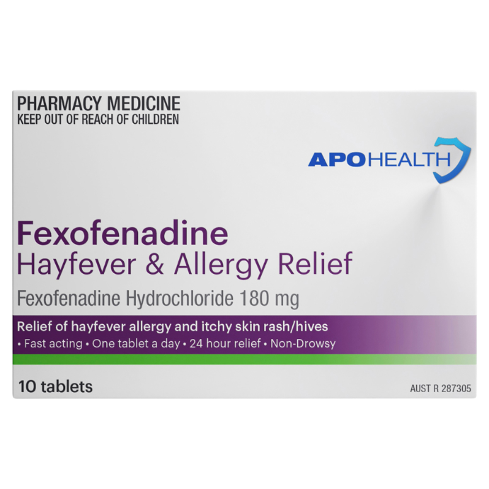 APO HEALTH Fexofenadine 180mg Hayfever & Allergy Relief Blister Pack 10 Tablets