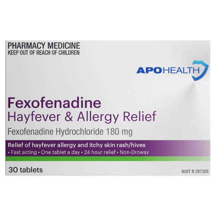 APO HEALTH Fexofenadine 180mg Hayfever & Allergy Relief Blister Pack 30 Tablets