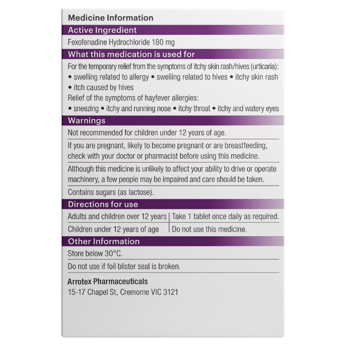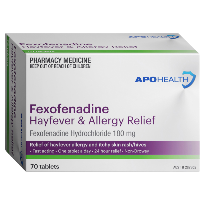 APO HEALTH Fexofenadine 180mg Hayfever & Allergy Relief Blister Pack 70 Tablets