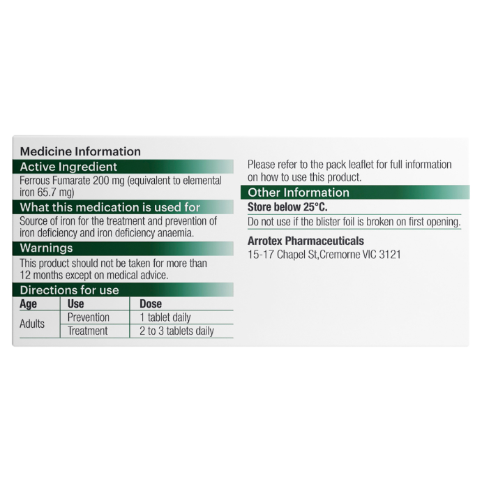 APO HEALTH Iron Ferrous Fumarate 200mg Blister Pack 60 Tablets