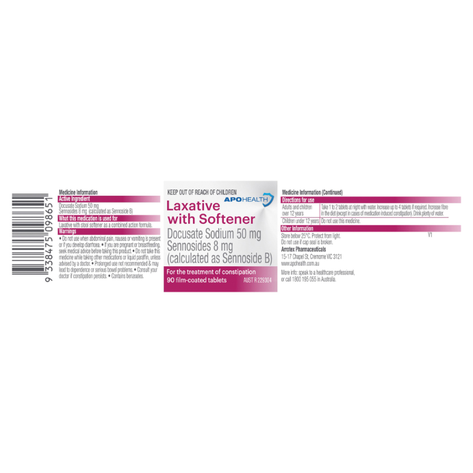 APO HEALTH Laxative With Softener 50mg Bottle 90 Tablets