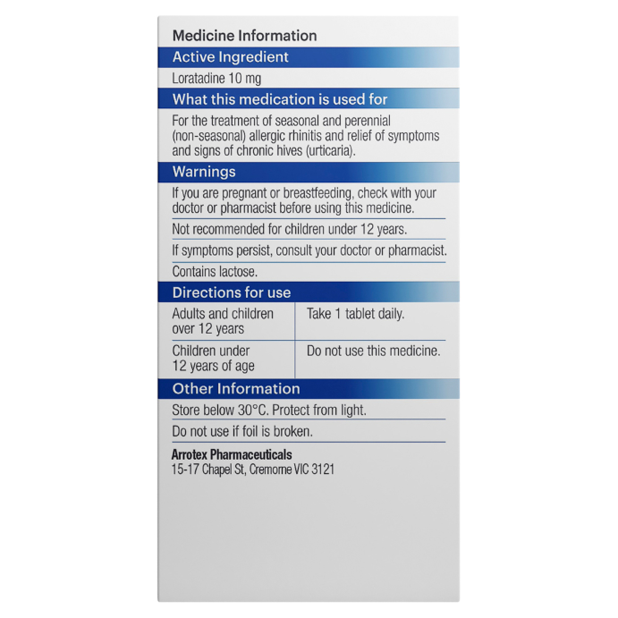 APO HEALTH Loratadine Loratadine Hayfever Allergy Relief Blister Pack 50 Tablets