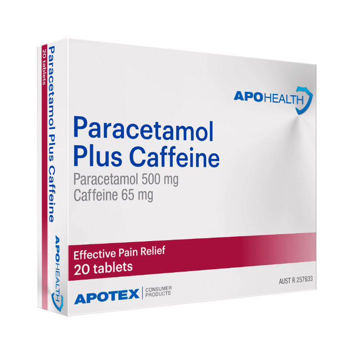 APO HEALTH Paracetamol 500mg PLUS Caffeine 65mg Blister Pack 20 Tablets