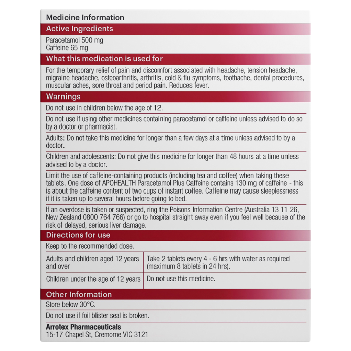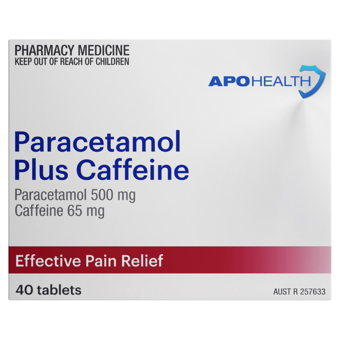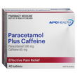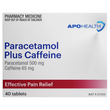 APO HEALTH Paracetamol 500mg PLUS Caffeine 65mg Blister Pack 40 Tablets