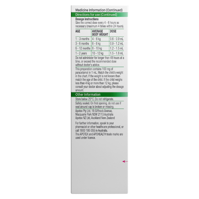 APO HEALTH Paracetamol Children's Paracetamol 1mth to 2yr Bottle 20mL