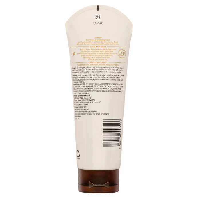 What it doesAVEENO® Skin Renewal Exfoliating Scrub gently cleanses & resurfaces skin by removing dead skin cells for more radiant, smooth healthy-looking skin.
