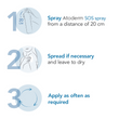 • InstructionsWhen itching occurs, at any time of day or night. Alone or in combination with medical treatment. Spray Atoderm SOS Spray from 20cm onto clean, dry skin. Spread if necessary. Let dry. Apply as often as needed.