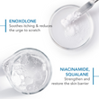 • Niacinamide and squalene supplement the formula in order to supply lipids required to strengthen the skin barrier.
