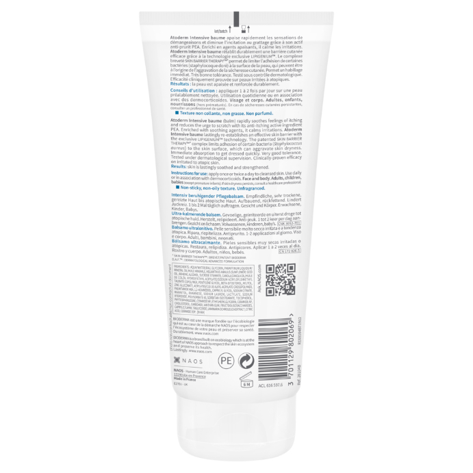 - What it isAtoderm Intensive Baume helps act on the main causes of discomfort for those with very dry, irritated and mild eczema-prone skin. Irritation and tightness can be the result of an altered skin barrier and an unbalanced microbiome which can aggravate dryness and discomfort. Atoderm Intensive Baume uses 3 main actions to restore comfort in very dry skin and help reduce the frequency of flare-ups.