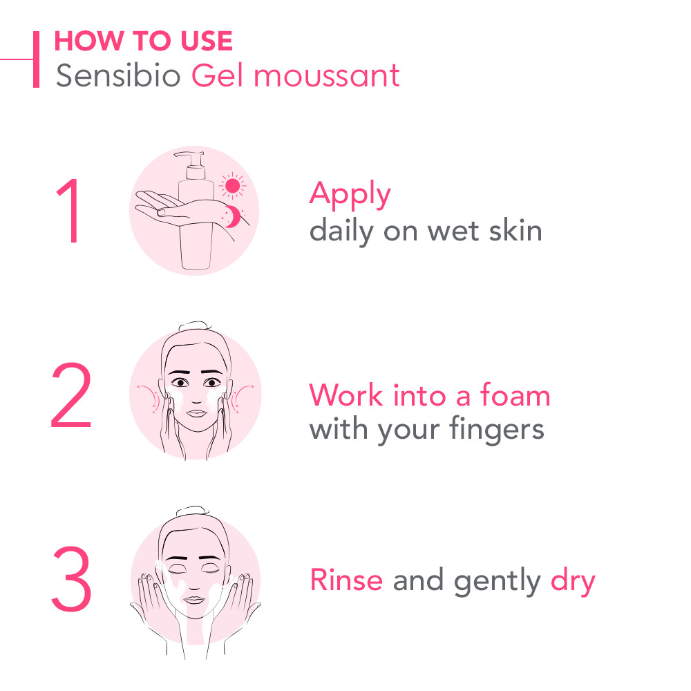 - InstructionsApply Sensibio Gel Moussant on damp skin. Lather, then rinse thoroughly. Gently pat the skin to dry. Use in the morning and/or at night. Can be used as a makeup remover.