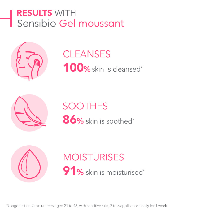 Sensibio Gel Moussant gently cleanses sensitive skin using micellar technology and reinforces the skin's natural hydration.