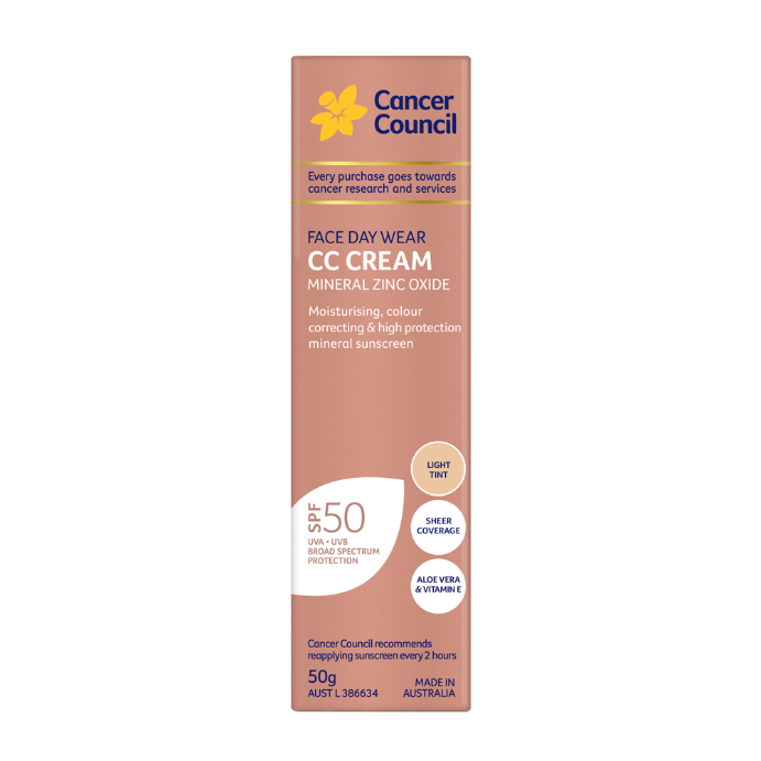Cancer Council Face Day Wear CC Cream Mineral Zinc Oxide Light Tint SPF50 50g