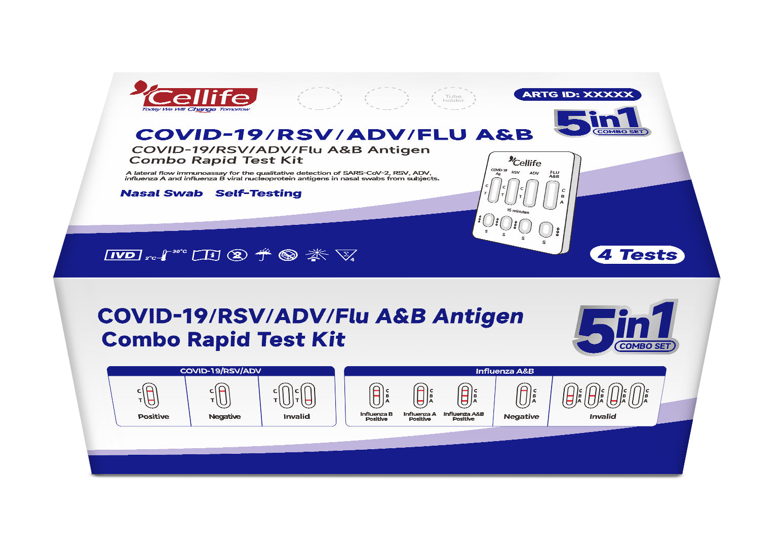 Cellife COVID-19/RSV/ADV/FLU A&B Antigen Combo Test Kit (5 in 1) | (Pending TGA)