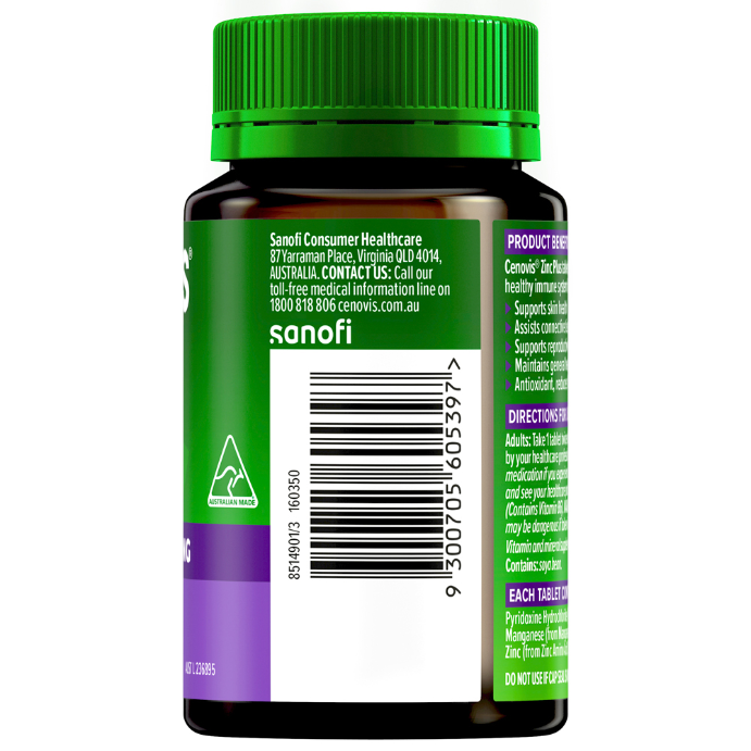 - What it isCenovis® Zinc Plus tablets support skin health and maintain healthy immune system function.
