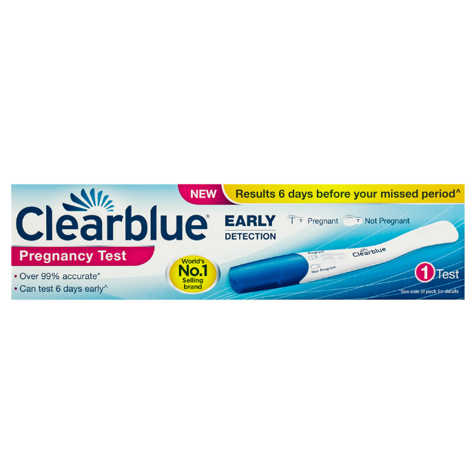 - What it doesClearblue Early Detection Pregnancy Test for results 6 days before your missed period ('Missed period' is the day after you expect your period). Over 99% accurate from the day of your expected period.