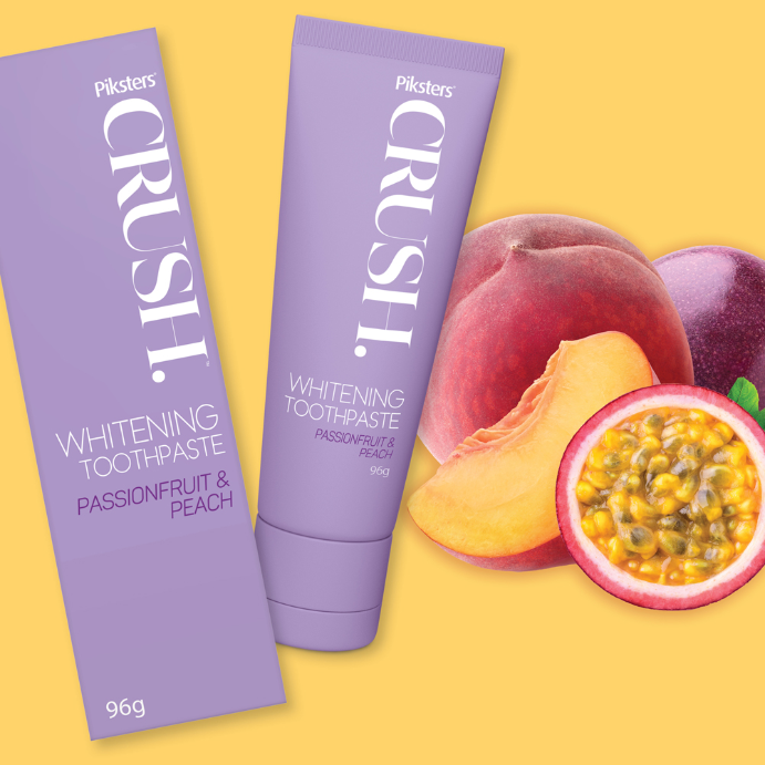 - What it isIgnite love at first brush with Piksters® CRUSH® Passionfruit & Peach Whitening Toothpaste. Enjoy a burst of flavoured freshness!