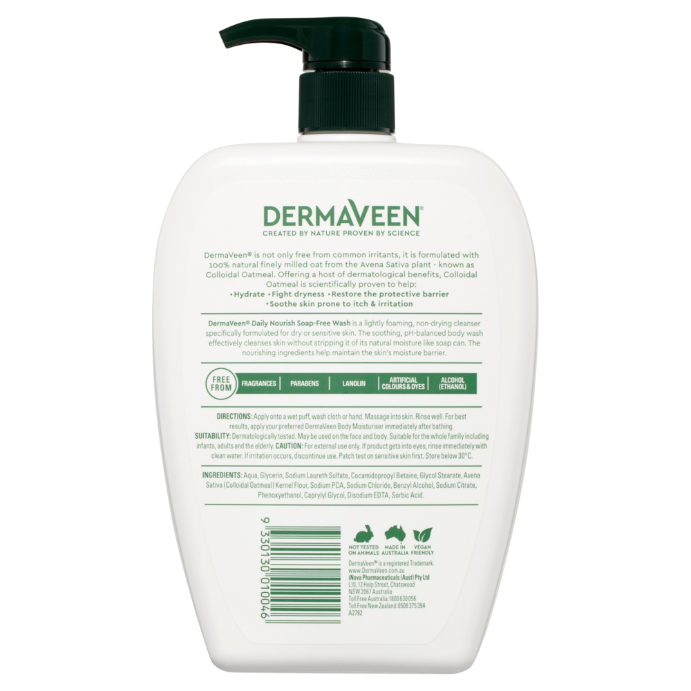 DermaVeen Daily Nourish Soap-Free Wash for Dry & Sensitive Skin 1L
