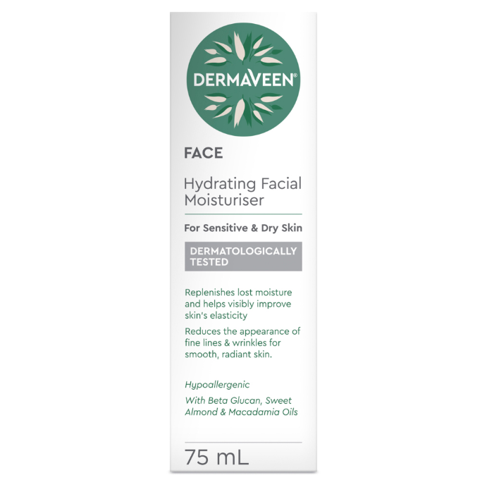 - What it isDermaVeen Hydrating Facial Moisturiser soothes and restores with colloidal oatmeal. It is dermatologically tested, hypo-allergenic,