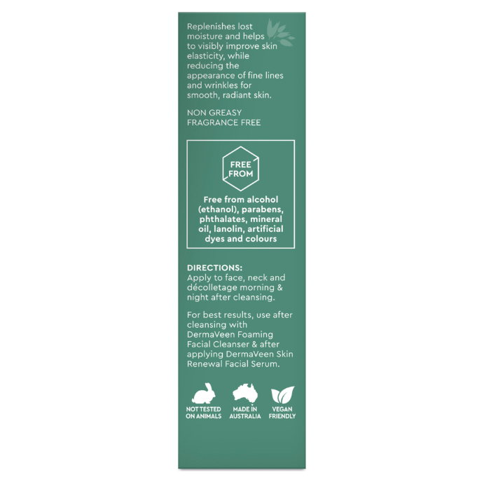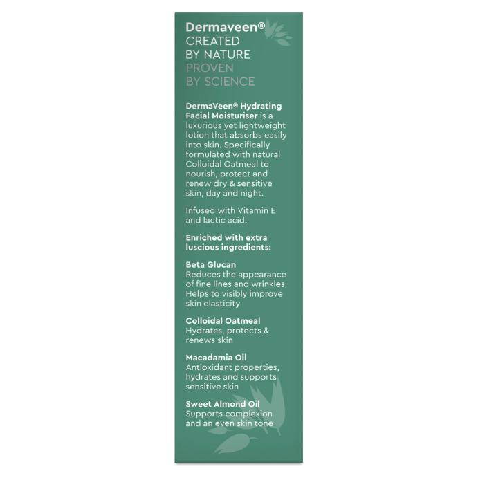 - What it doesDermaVeen Hydrating Facial Moisturiser is specifically formulated with natural Colloidal Oatmeal to nourish, protect and renew dry