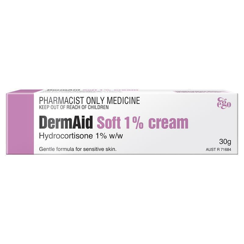 What it doesDermAid Soft 1% Cream is for the temporary relief of mild inflammatory skin irritations including eczema and dermatitis, allergies to cosmetics and jewellery, insect bites, psoriasis, sunburn and other corticosteroid responsive skin conditions.