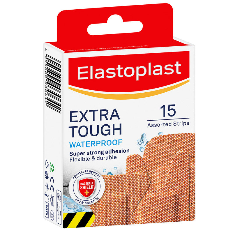 Elastoplast Extra Tough Waterproof Plasters Strips Bandages Pad Assorted 15 Pack