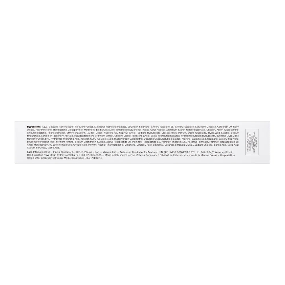 The core formulation of Fillerina Day Creams has been enriched with 4 additional medium weight Hyaluronic Acid molecules up to a system composed of 12 DIFFERENT HYALURONIC ACID MOLECULES, all with different molecular weights (from 400 to 2000 Ka Da) with excellent replenishing, resistance and plumping performances. 3 COLLAGEN MOLECULES for the firmness and compactness of the skin. 2 ELASTINS to add flex and elasticity. Both of them facilitate the replenishing effect of the skin in combination with Hyaluronic Acid molecules. They assist the replenishing and plumping action of hyaluronic acids, acting more gradually and supporting their biological function at skin level: Palmitoyl Tripeptide-38 (Matrifull) and Acetyl Hexapeptide-37. Finally, Chondroitin Sulfate helps create a 3D scaffold with Hyaluronic Acid molecules. The Day Cream ingredients also include XYLITOL, a moisturizing sugar for skin hydration and VITAMIN E which plays a protective and antioxidant function. To be used alone or together with other Fillerina products.