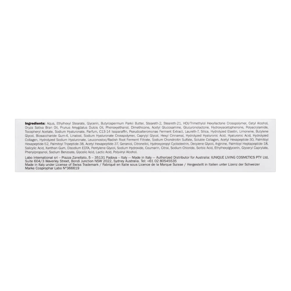 The core formulation of Fillerina Eye Creams has been enriched with 4 additional medium weight Hyaluronic Acid molecules up to a system composed of 12 DIFFERENT HYALURONIC ACID MOLECULES, all with different molecular weights (from 400 to 2000 Ka Da) with excellent replenishing, resistance and plumping performances. 3 COLLAGEN MOLECULES for the firmness and compactness of the skin. 2 ELASTINS to add flex and elasticity. Both of them facilitate the replenishing effect of the skin in combination with Hyaluronic Acid molecules. They assist the replenishing and plumping action of hyaluronic acids, acting more gradually and supporting their biological function at skin level: Palmitoyl Tripeptide-38 (Matrifull) and Acetyl Hexapeptide-37. Finally, Chondroitin Sulfate helps create a 3D scaffold with Hyaluronic Acid molecules. The Eye Contour Cream ingredients also include RICE OIL emollient, moisturizing and soothing for skin youthfulness, SHEA BUTTER for moisturizing and nourishing the skin and SWEET ALMOND OIL for emollient, moisturizing and soothing effects. To be used alone or together with other Fillerina products.