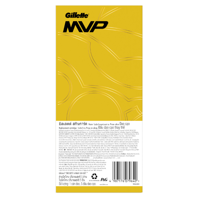 - What it doesLevel up with the Gillette MVP Limited Edition Razor + 5 Blade Refill Cartridges. With Gillette Skinguard technology positioned between the blades to minimize tug and pull, and to cut hair at skin level, protecting skin from irritation.
