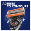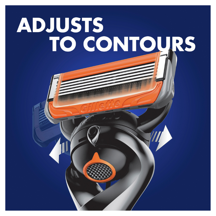 - What it doesThe Gillette ProGlide Power men's razor with FlexBall technology responds to contours and gets virtually every hair effortlessly. Lubrication before and after the blades, shields from irritation. Battery-powered soothing micropulses help you to reduce friction so the razor glides even more smoothly over the skin. And with its blades spaced closely together for incredible comfort and a precision trimmer on the back, you can dare to get close.