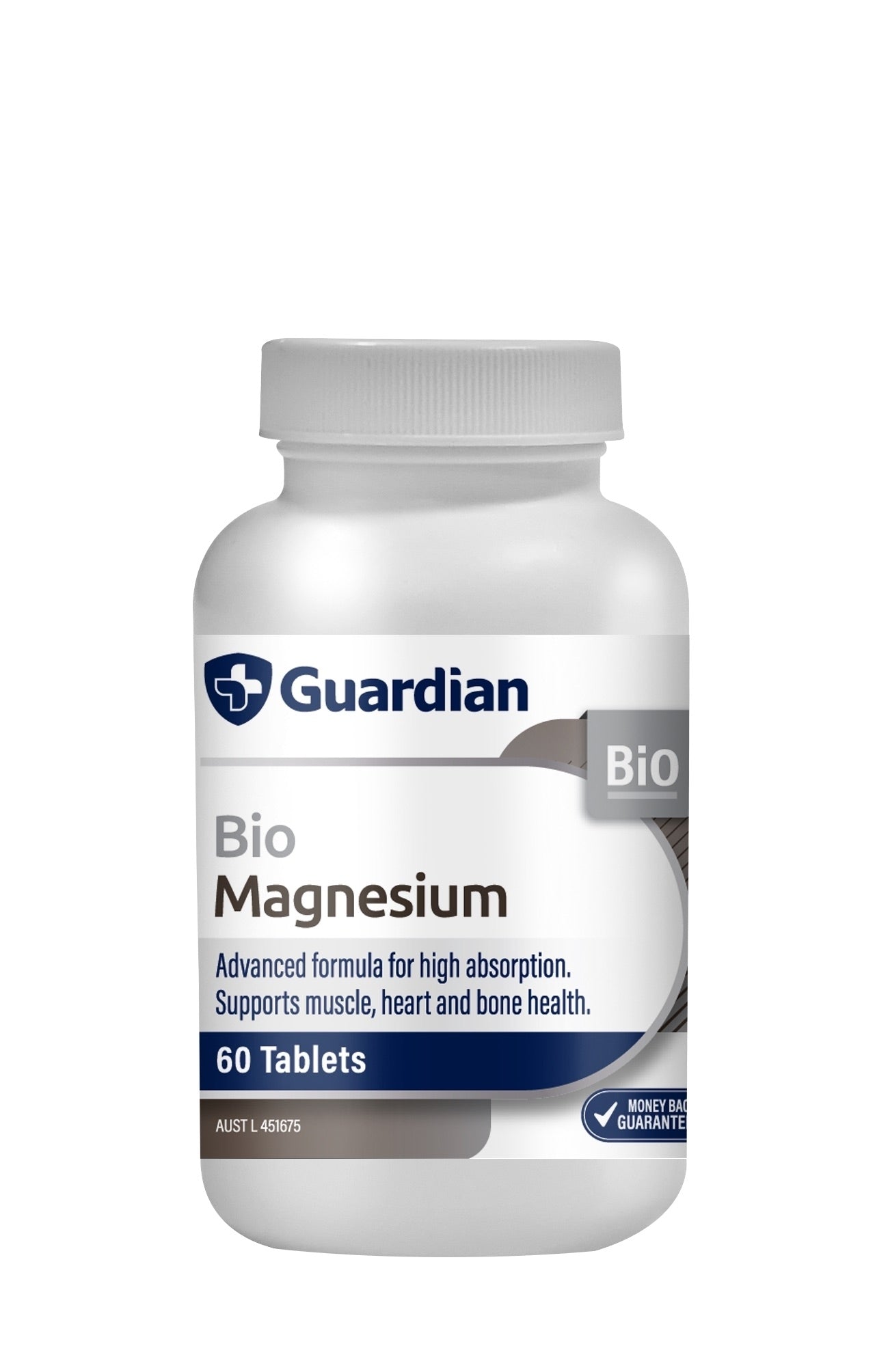 Guardian Bio Magnesium is a high potency formula that supports muscle, heart and bone health while maintaining energy levels.
