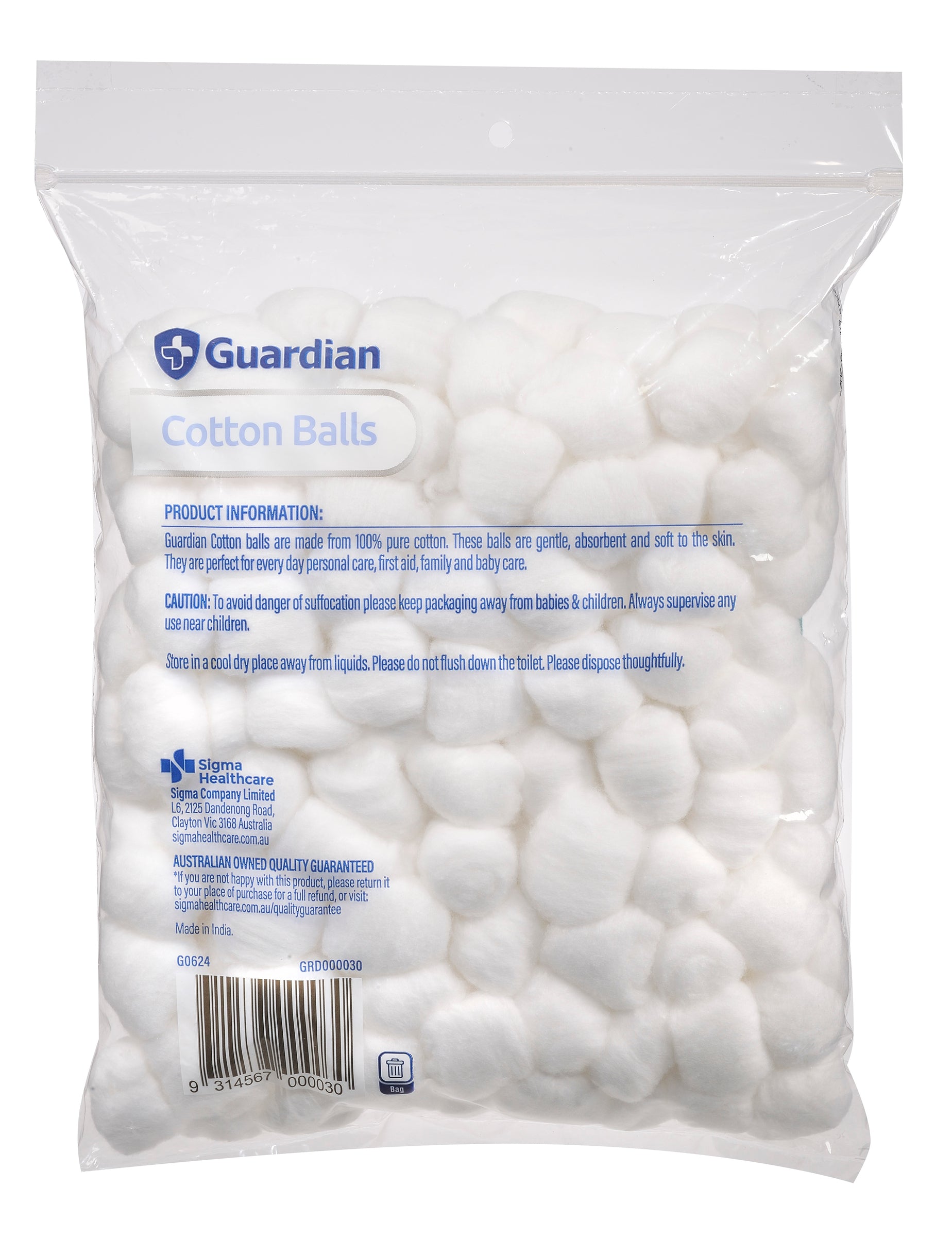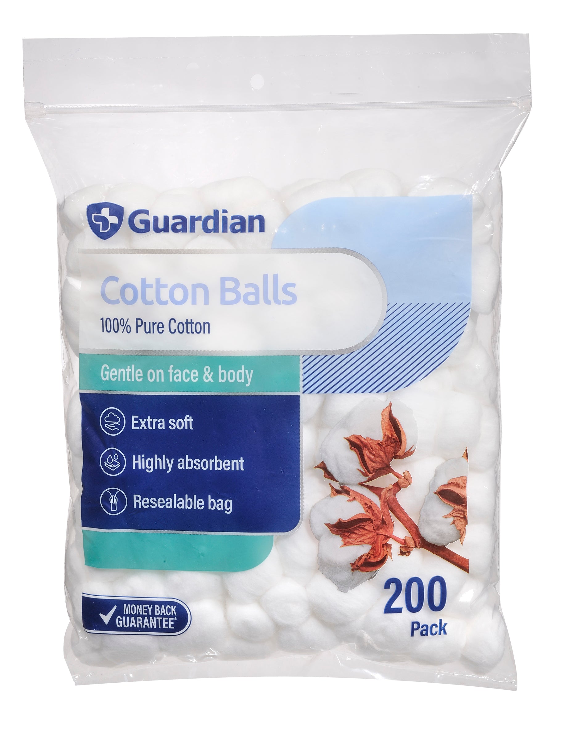 Guardian Cotton Balls 200PK are made from 100% pure cotton.