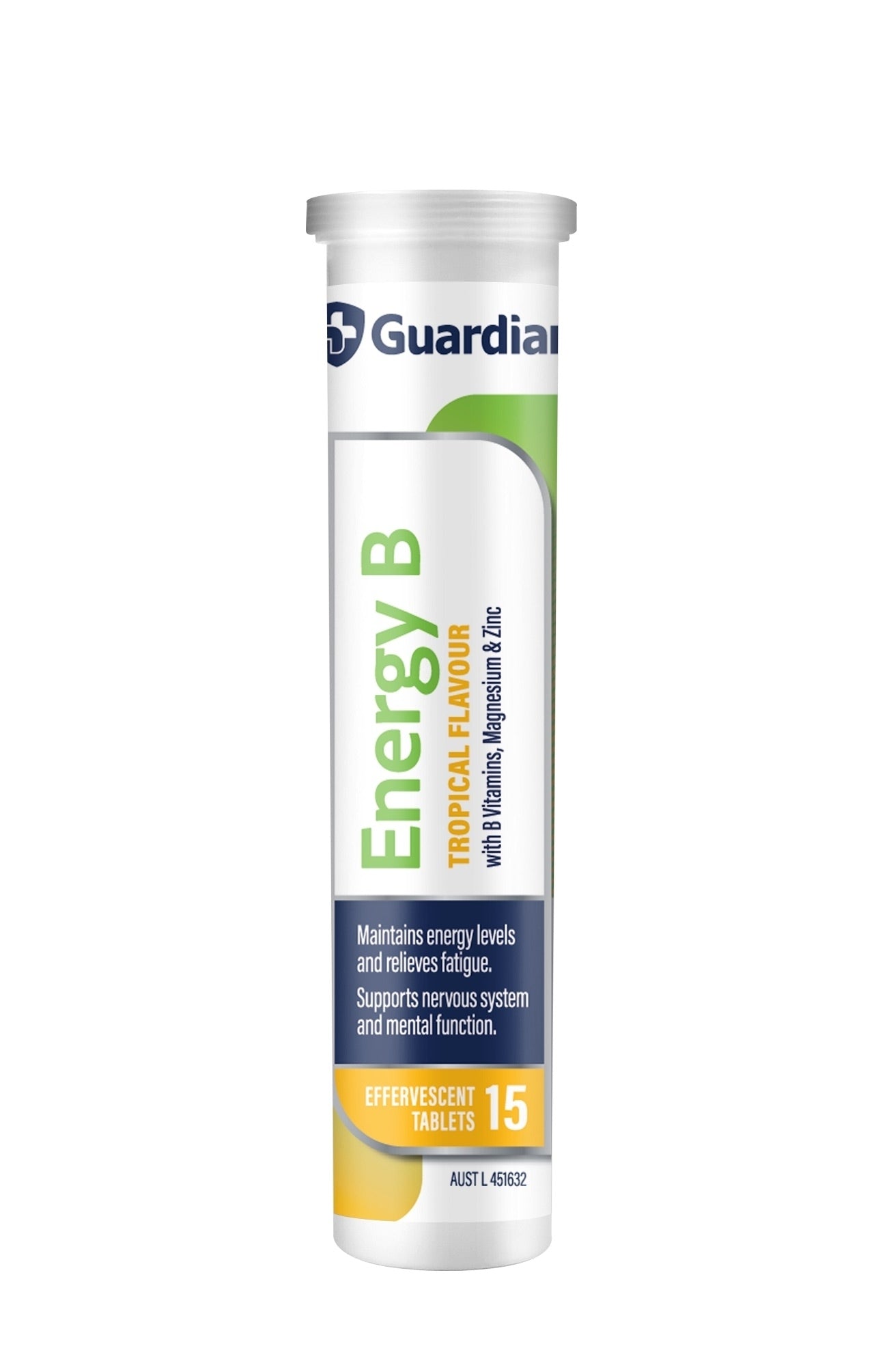 Guardian Energy B Effervescent maintains energy levels and relieves fatigue, while supporting nervous system and mental function.