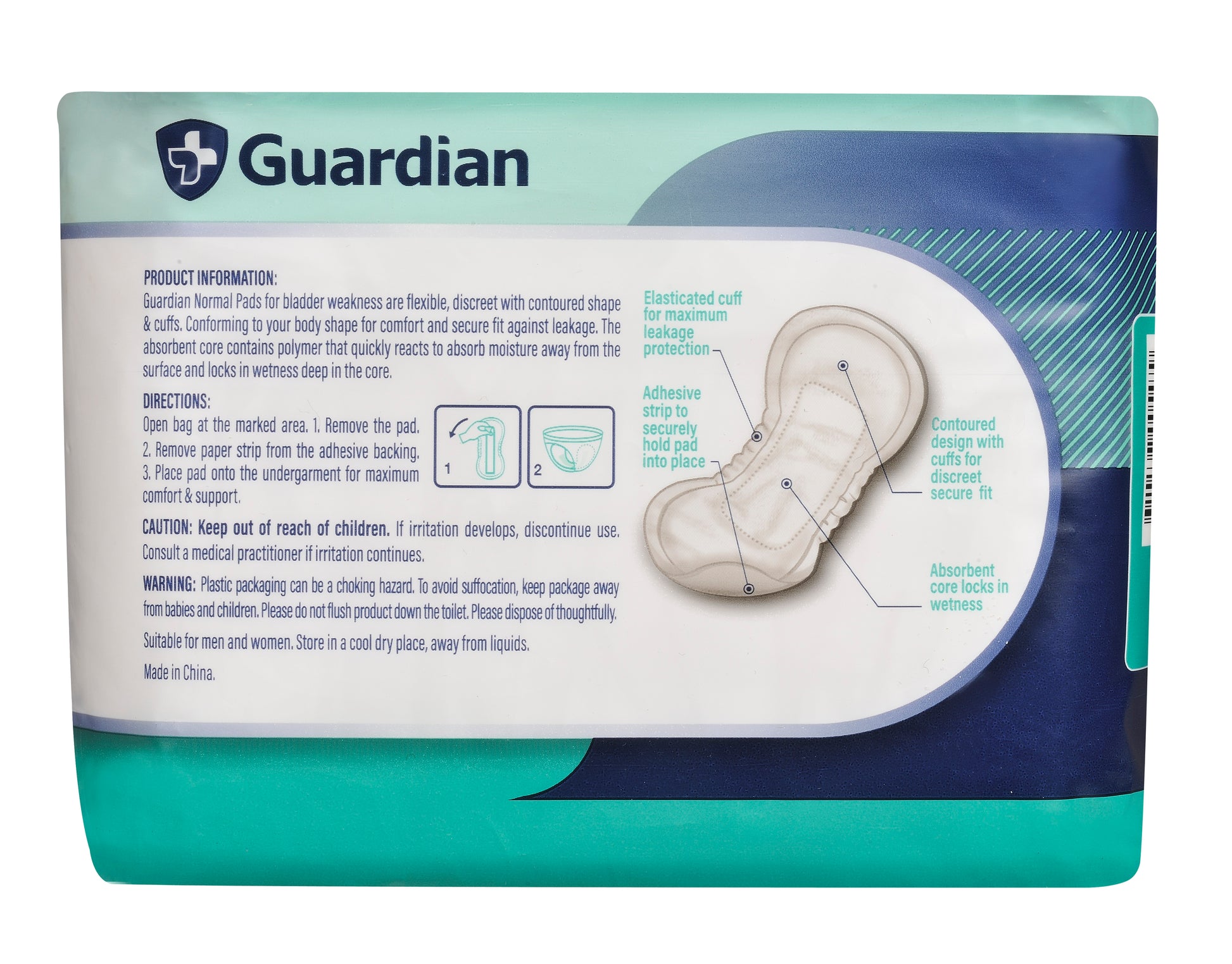 Guardian Normal Pads for bladder weakness are flexible, discreet with contoured shape & cuffs. Suitable for men and women.