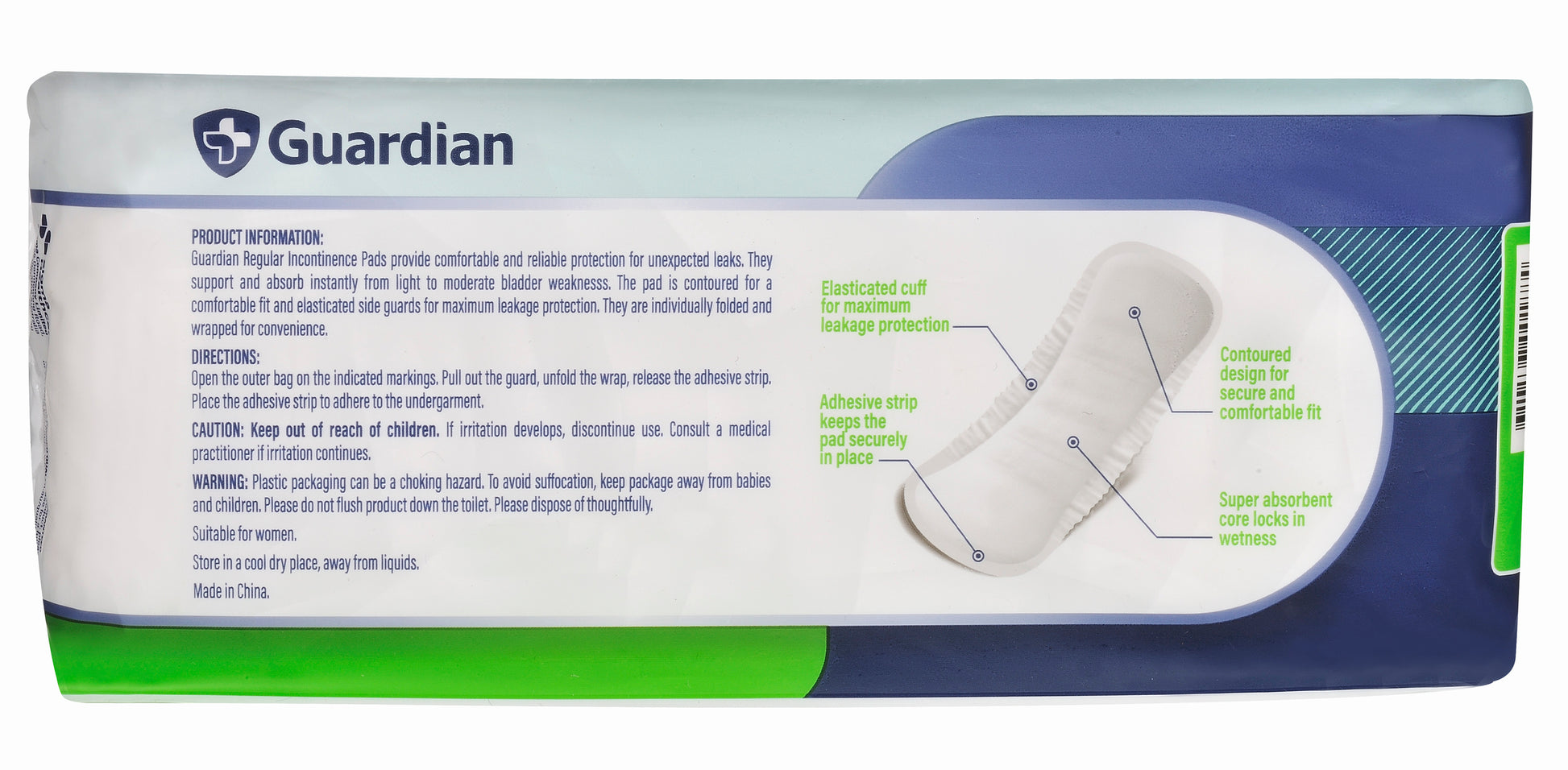 Guardian Regular Incontinence Pads provide comfortable and reliable protection for unexpected leaks.
