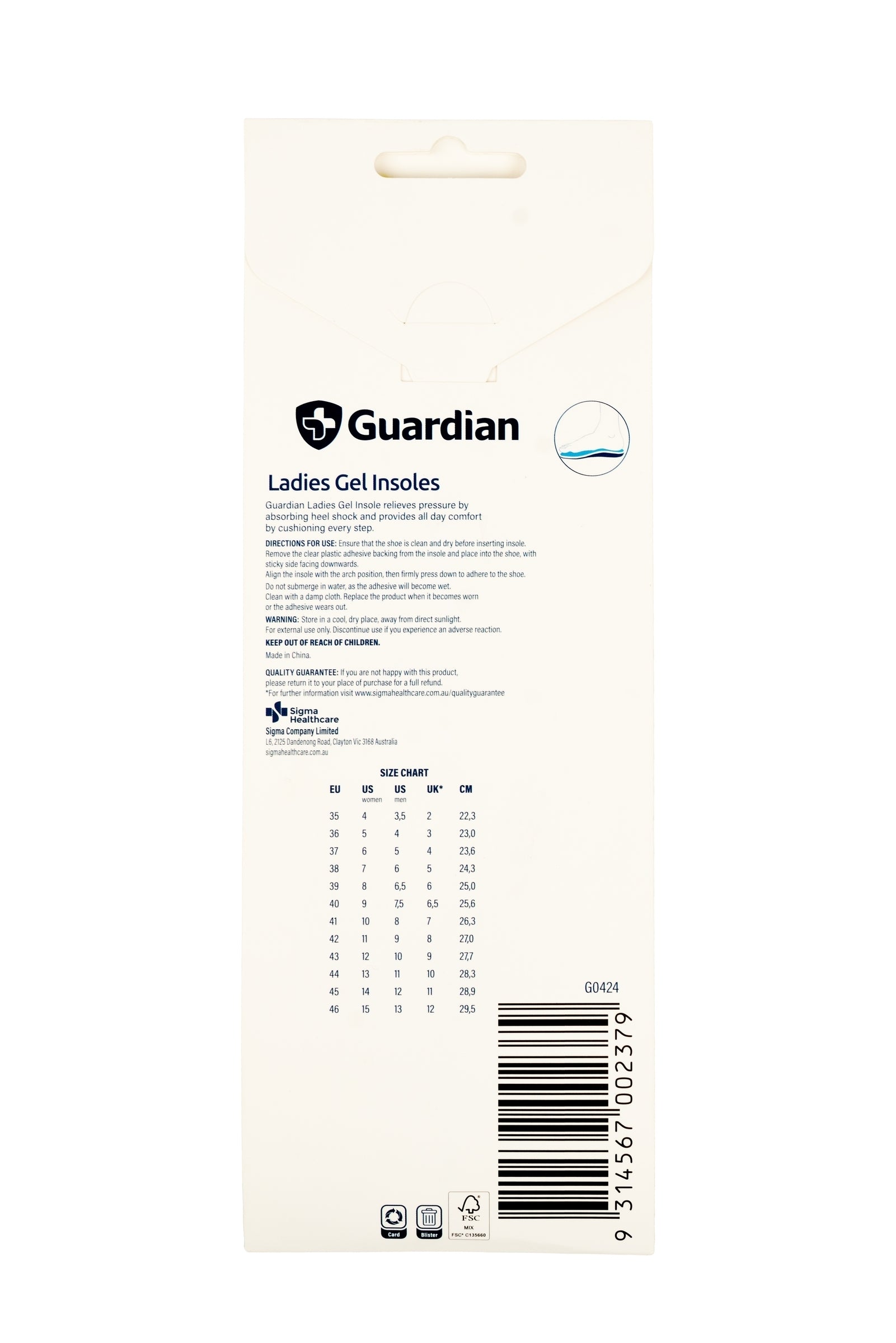 Guardian Ladies Gel Insoles