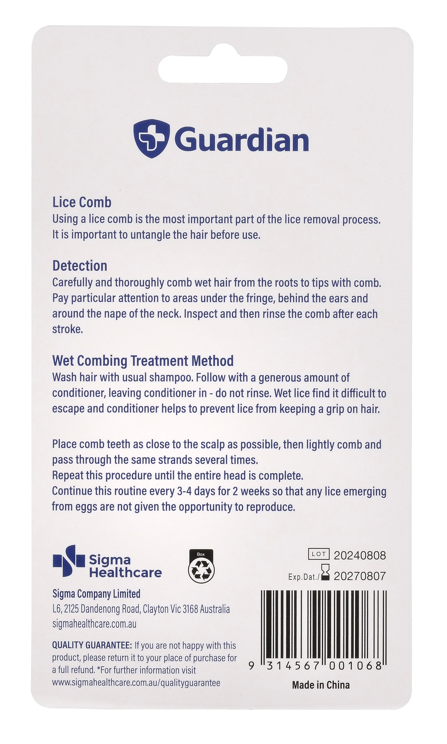 Using a Guardian Lice Comb is the most important part of the lice removal process.