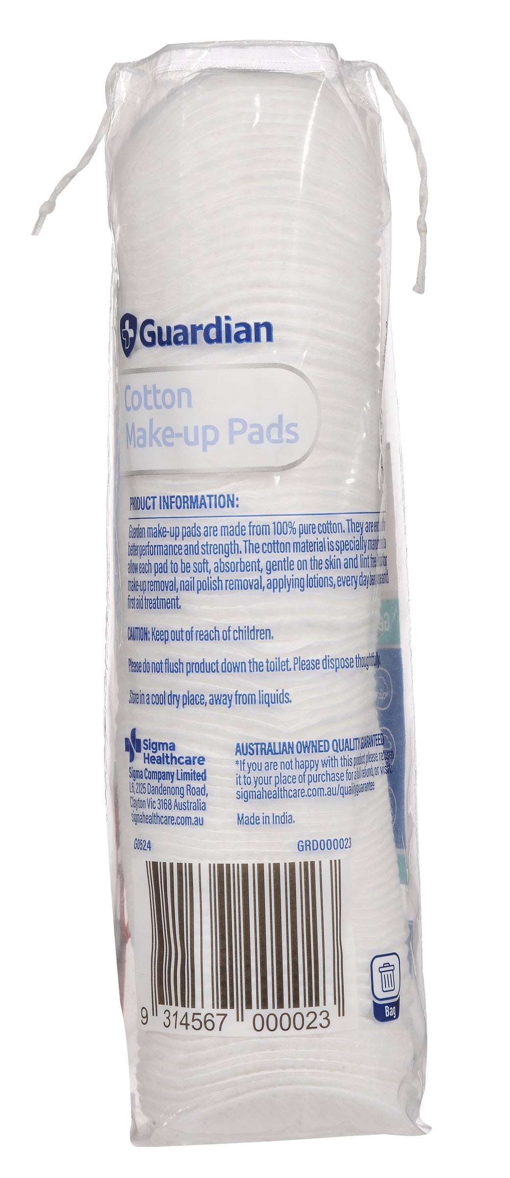 Guardian Make Up Pads are made from 100% pure cotton. They are embossed for better performance and strength.