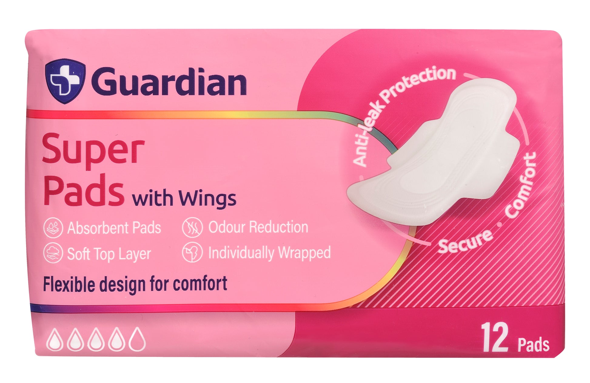 Guardian Super Pads with wings are designed to conform to your body shape allowing protection, comfort and confidence.