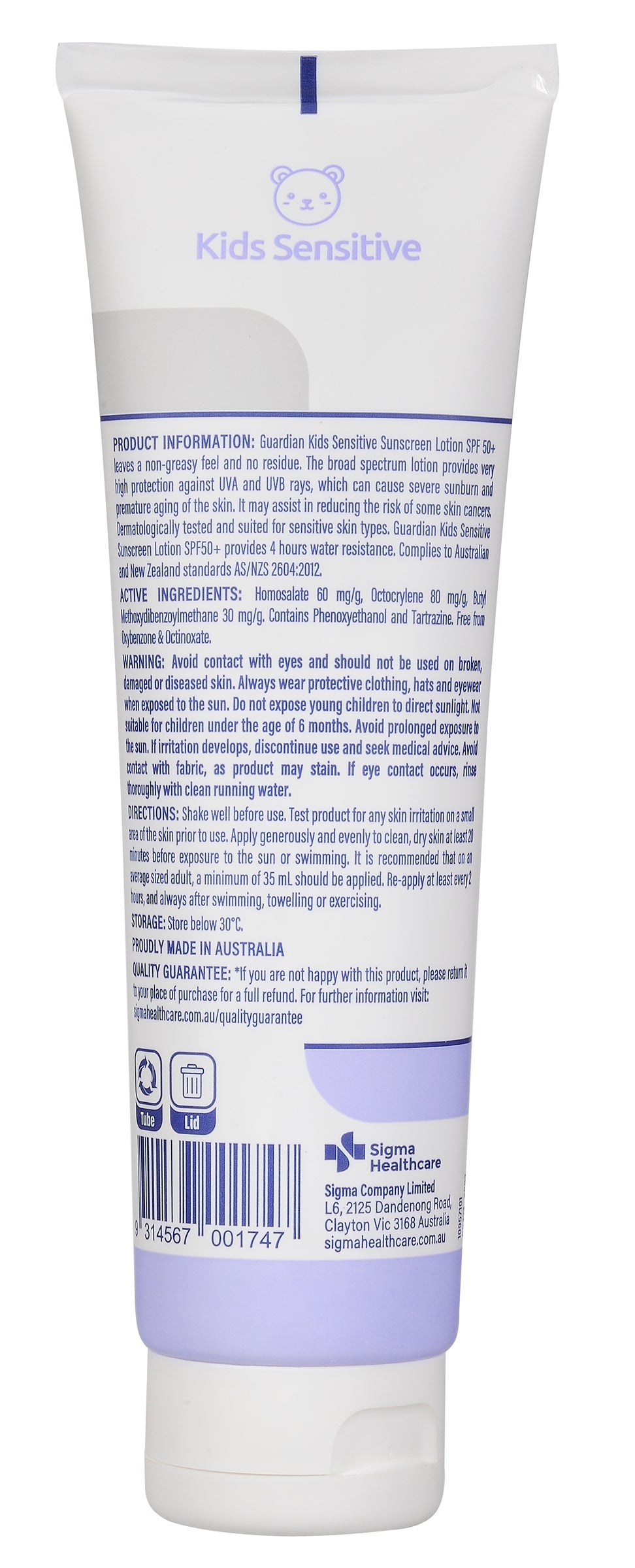 Guardian Kids Sensitive Sunscreen SPF50+ (125 mL)