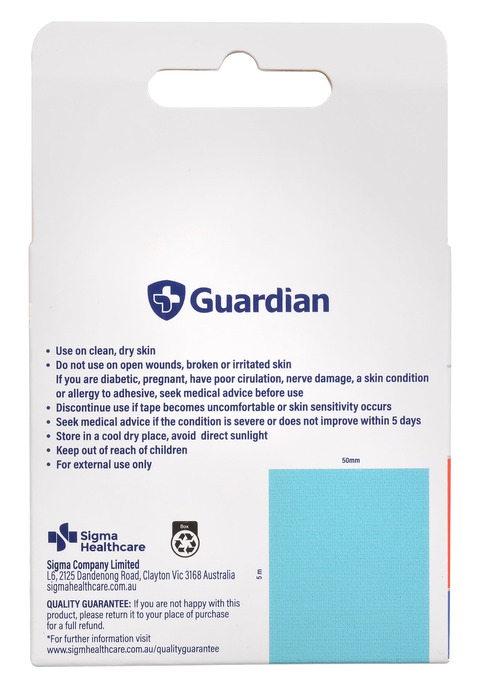 Guardian Kinesiology Tape 50mmx5m Blue, relieves & supports.