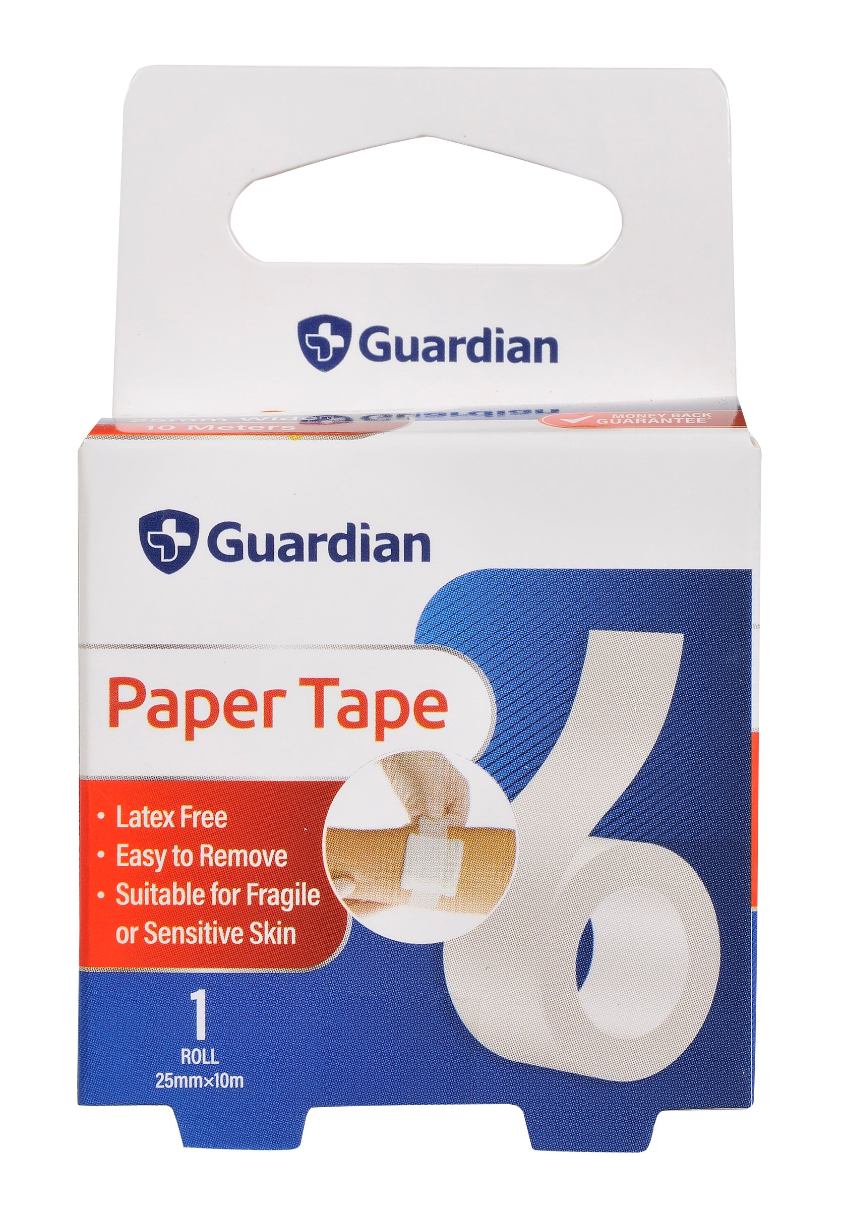 Guardian Paper Tape is latex free and suitable for fragile or sensitive skin.