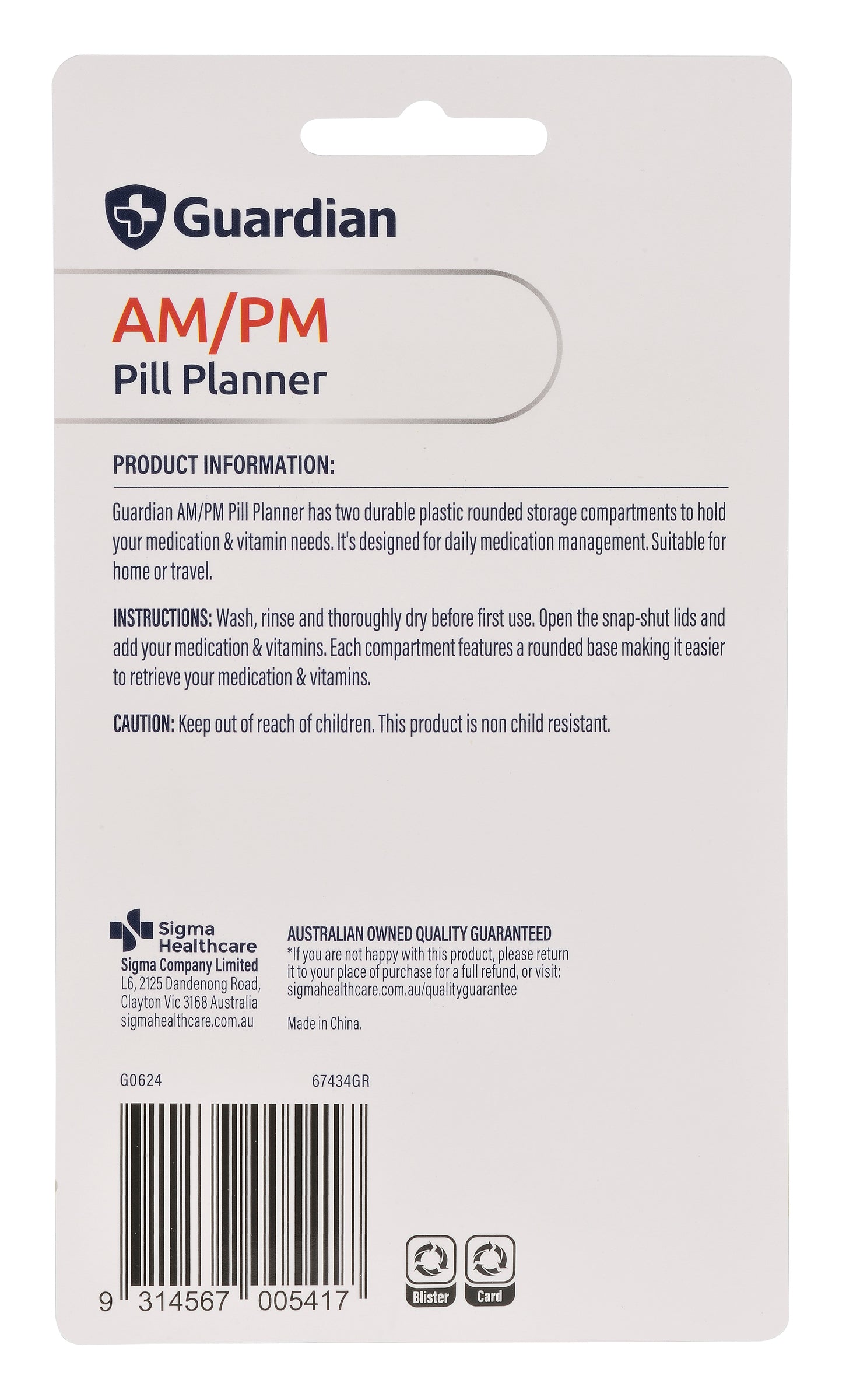 Guardian AM/PM Pill Planner