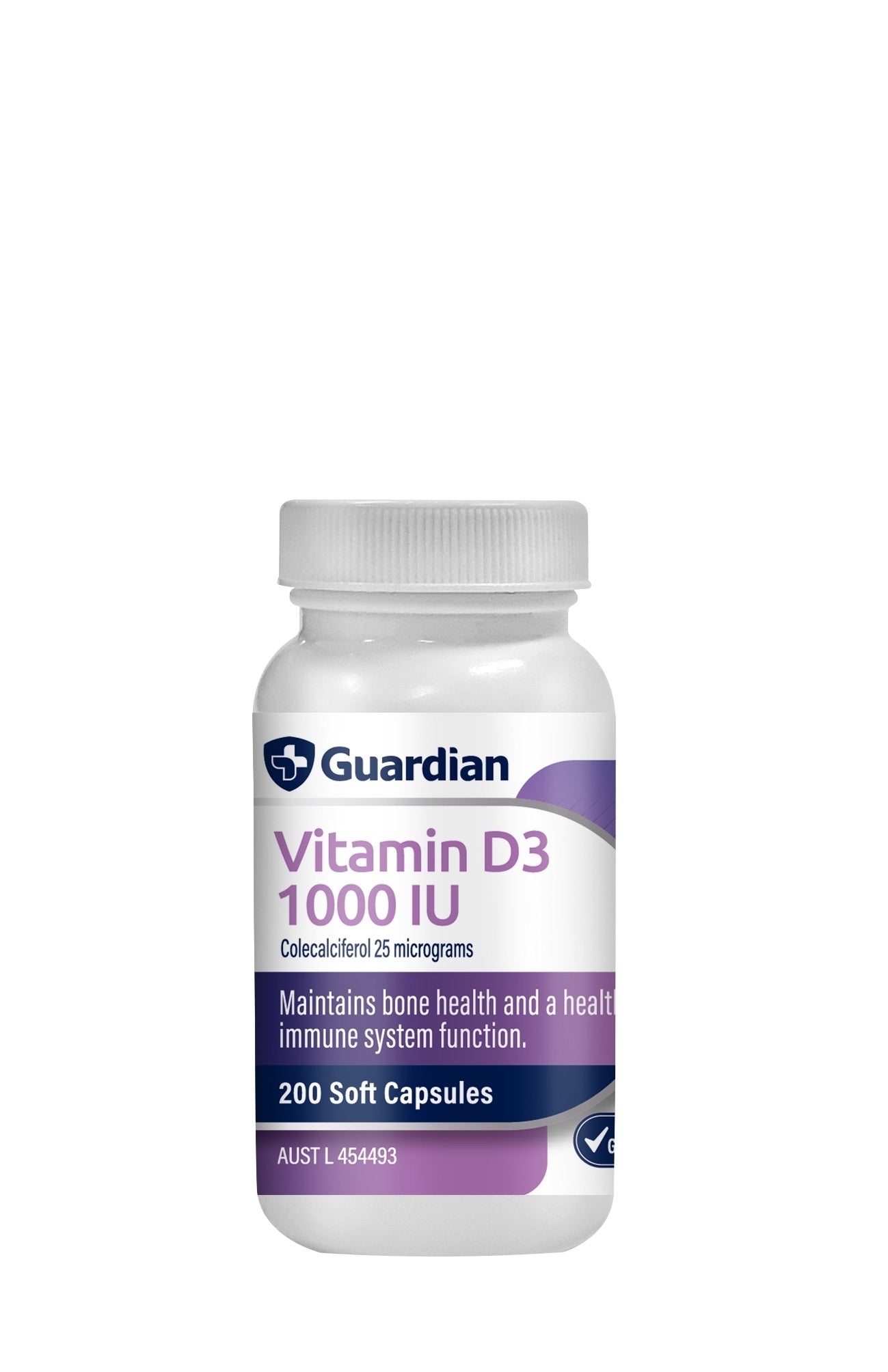 Guardian Vitamin D3 1000 IU maintains bone health and a healthy immune system function.