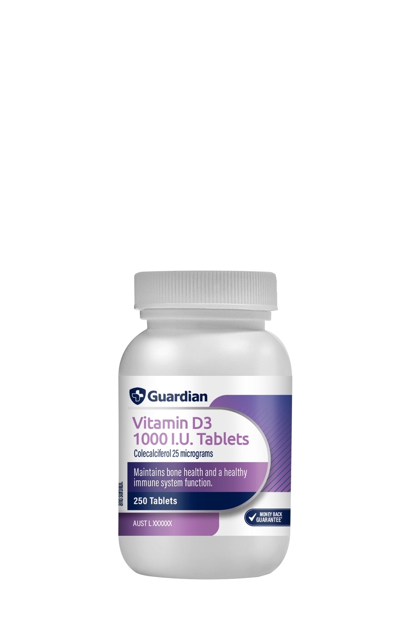 Guardian Vitamin D3 1000 IU maintains bone health and a healthy immune system function.