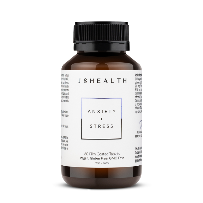 - What it isThe JSHealth Anxiety + Stress formula is designed to help reduce the occurrence of symptoms of mild anxiety, and relieve symptoms of stress and nervous tension, based on traditional Western herbal medicine with a combination of rejuvenating adaptogens, herbs, antioxidants and vitamins.